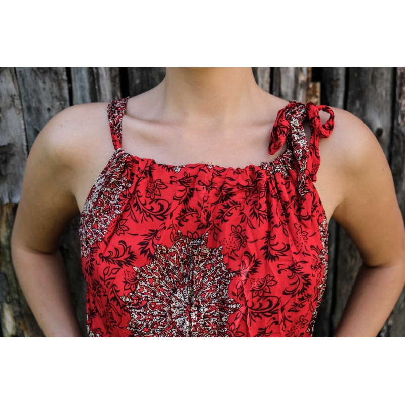 Šaty pochází ze slunného Laosu a jsou ručně vyráběné venkovskými řemeslníky a místními umělci ze znevýhodněných skupin. Svou koupí zároveň těmto výrobcům přispíváte na živobytí a pomáháte zdokonalovat řemeslné výrobky. Každý kousek je originál.