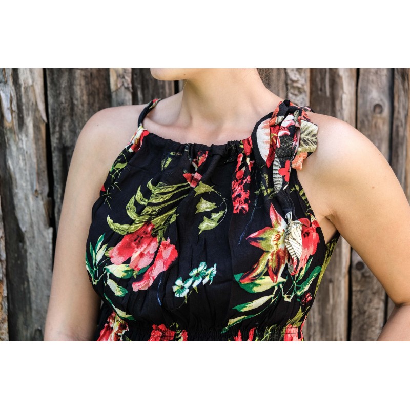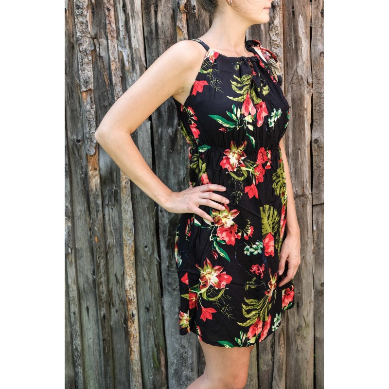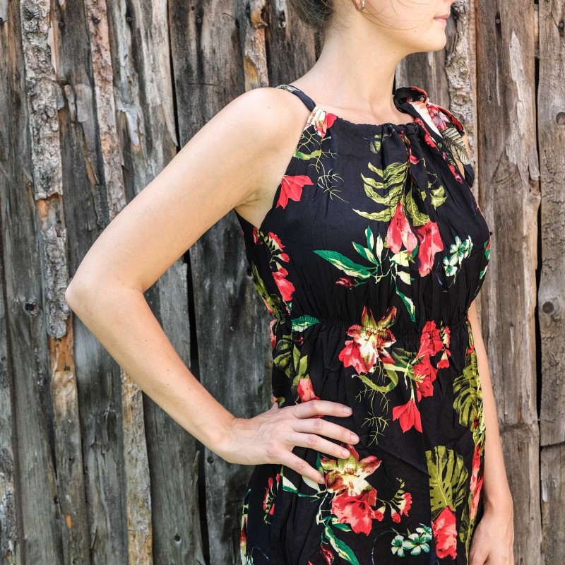 V pase se nachází pružná guma, která se přizpůsobí všem velikostem (od XS - M). Pomocí variabilního látkového zavazování okolo krku si můžete nastavit velikost na míru přesně podle své postavy, a navíc zavázat na místě, kde se vám to zrovna bude líbit (vpravo, vlevo, nahoře, dole, vzadu nebo vpředu). Na šatech můžete a nemusíte mít i decentní výstřih, který si sami nastavíte. Na barvách a nápaditosti motivů se nešetří, šaty hýří pestrou paletou barev a také přírodními materiály jako je bavlna. Šaty kolem sebe šíří pozitivní energii a dobrou náladu, určitě je oceníte v horkých letních dnech. Střih je uzpůsoben každé postavě.