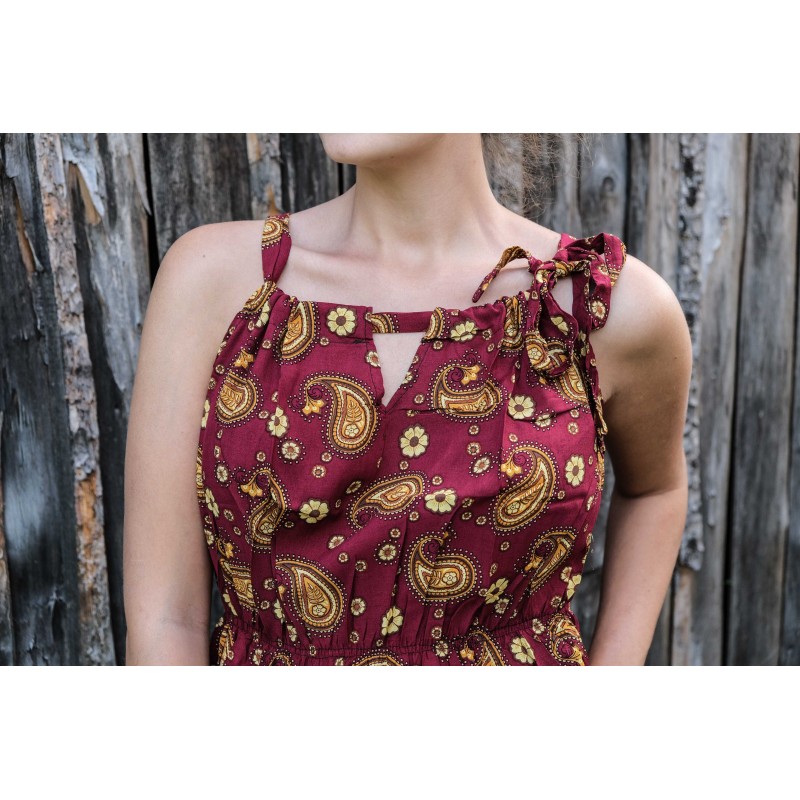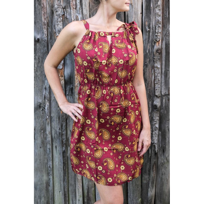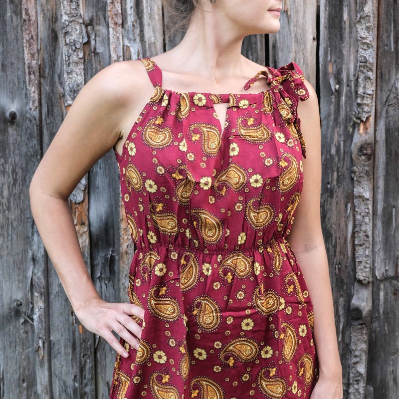 Šaty pochází ze slunného Laosu a jsou ručně vyráběné venkovskými řemeslníky a místními umělci ze znevýhodněných skupin. Svou koupí zároveň těmto výrobcům přispíváte na živobytí a pomáháte zdokonalovat řemeslné výrobky. Každý kousek je originál.