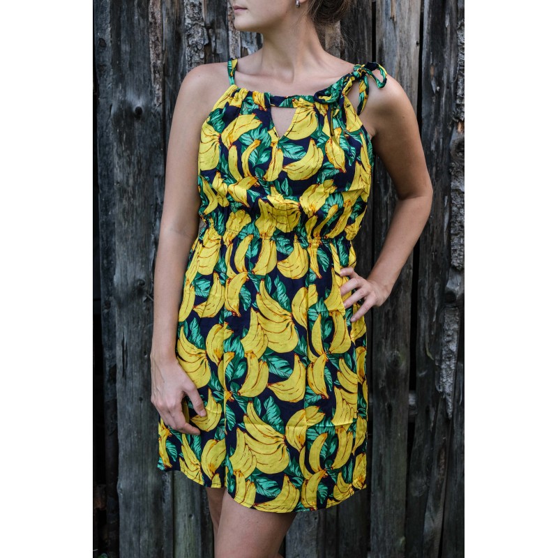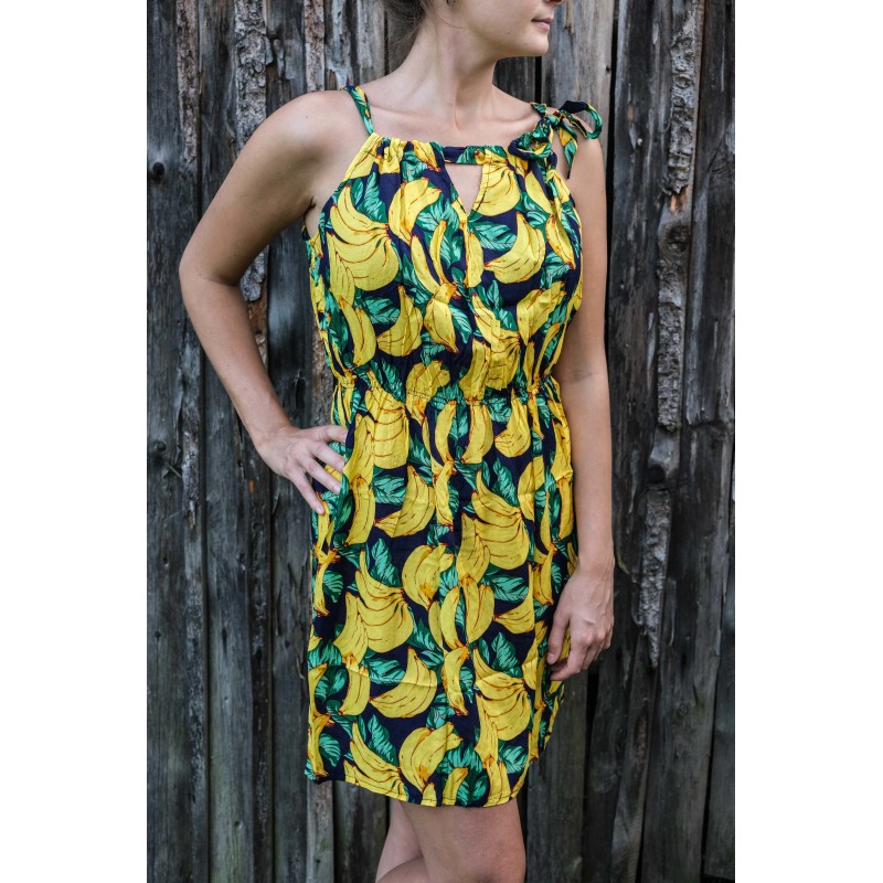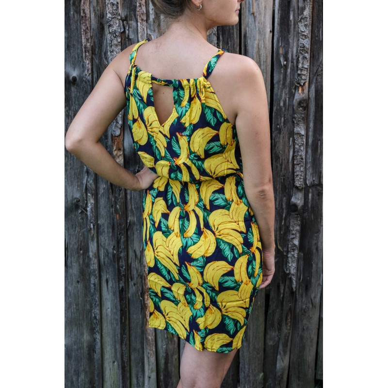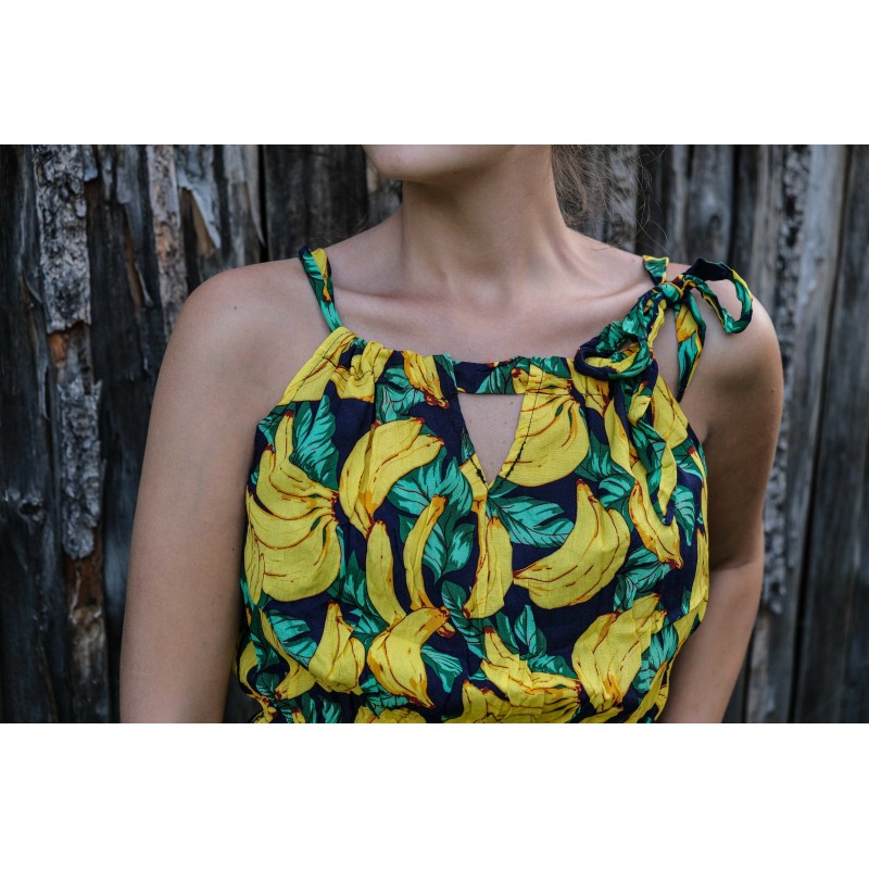 V pase se nachází pružná guma, která se přizpůsobí všem velikostem (od XS - M). Pomocí variabilního látkového zavazování okolo krku si můžete nastavit velikost na míru přesně podle své postavy, a navíc zavázat na místě, kde se vám to zrovna bude líbit (vpravo, vlevo, nahoře, dole, vzadu nebo vpředu). Na šatech můžete a nemusíte mít i decentní výstřih, který si sami nastavíte. Na barvách a nápaditosti motivů se nešetří, šaty hýří pestrou paletou barev a také přírodními materiály jako je bavlna. Šaty kolem sebe šíří pozitivní energii a dobrou náladu, určitě je oceníte v horkých letních dnech. Střih je uzpůsoben každé postavě.