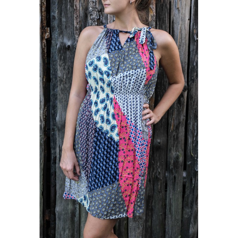 Šaty pochází ze slunného Laosu a jsou ručně vyráběné venkovskými řemeslníky a místními umělci ze znevýhodněných skupin. Svou koupí zároveň těmto výrobcům přispíváte na živobytí a pomáháte zdokonalovat řemeslné výrobky. Každý kousek je originál.