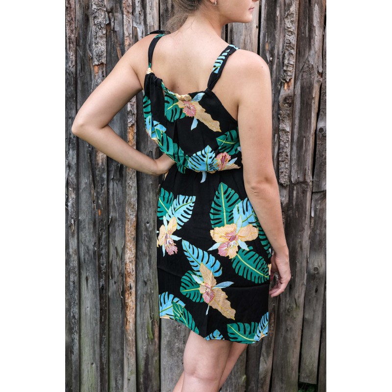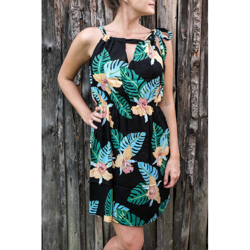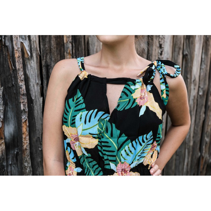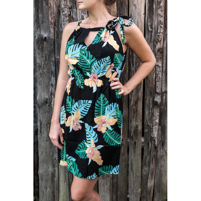 V pase se nachází pružná guma, která se přizpůsobí všem velikostem (od XS - M). Pomocí variabilního látkového zavazování okolo krku si můžete nastavit velikost na míru přesně podle své postavy, a navíc zavázat na místě, kde se vám to zrovna bude líbit (vpravo, vlevo, nahoře, dole, vzadu nebo vpředu). Na šatech můžete a nemusíte mít i decentní výstřih, který si sami nastavíte. Na barvách a nápaditosti motivů se nešetří, šaty hýří pestrou paletou barev a také přírodními materiály jako je bavlna. Šaty kolem sebe šíří pozitivní energii a dobrou náladu, určitě je oceníte v horkých letních dnech. Střih je uzpůsoben každé postavě.