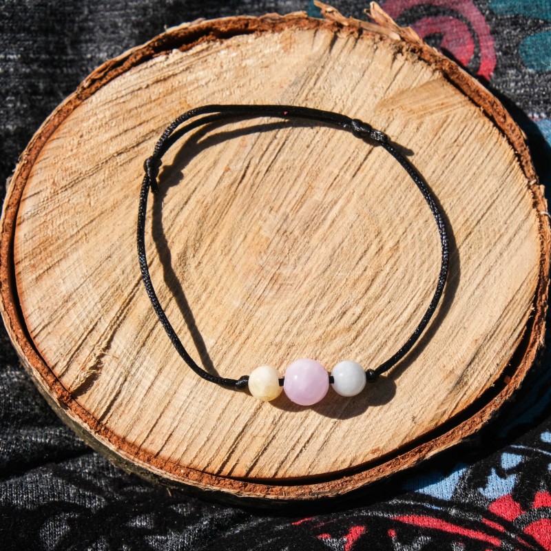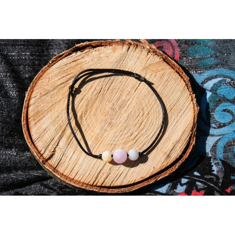 Jedná se o jemný šperk z přírodních materiálů. Náramek je možné nastavit na jakýkoli obvod zápěstí. Kamínky jsou navlečeny na saténovém vlákně černé barvy.