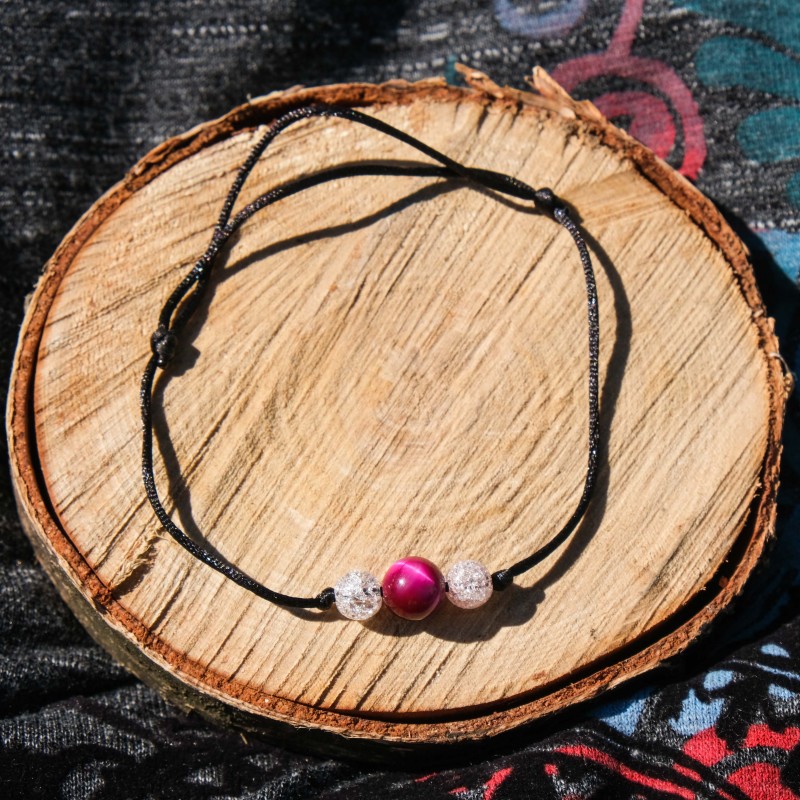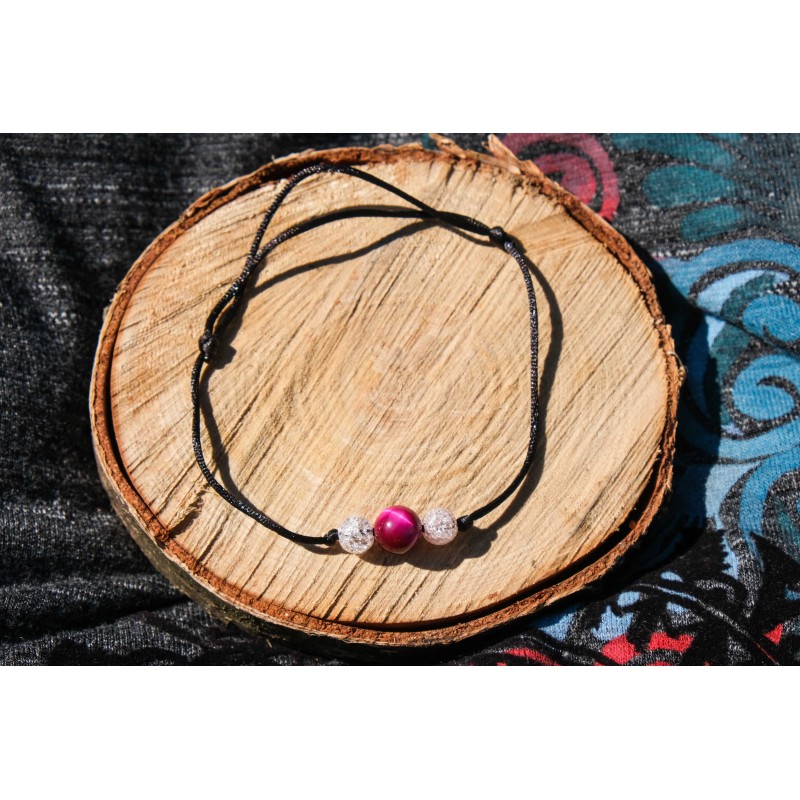 Minerály: Praskaný křišťál, tygří oko (magenta)