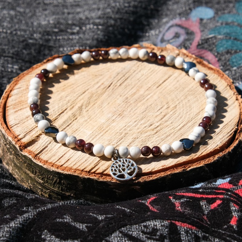 Energetický kotníkový náramek z minerálních kamenů na nohu
