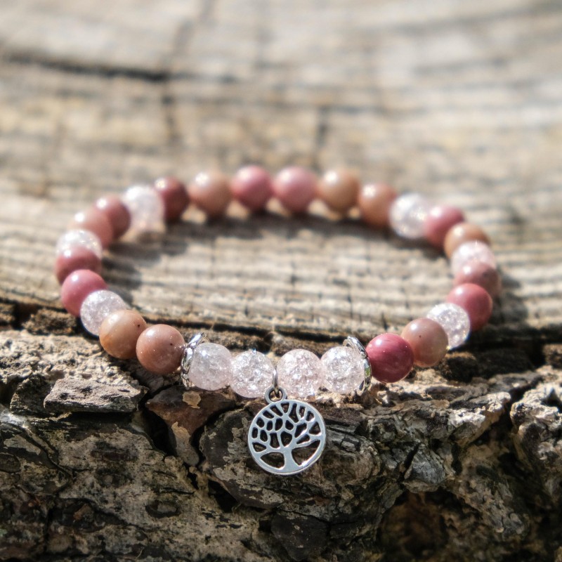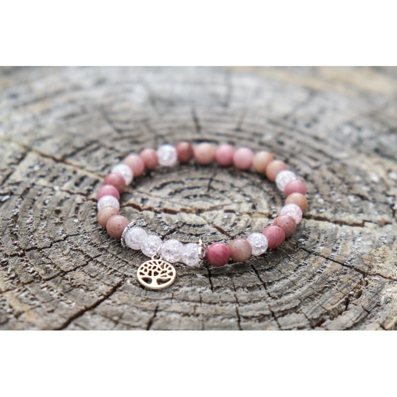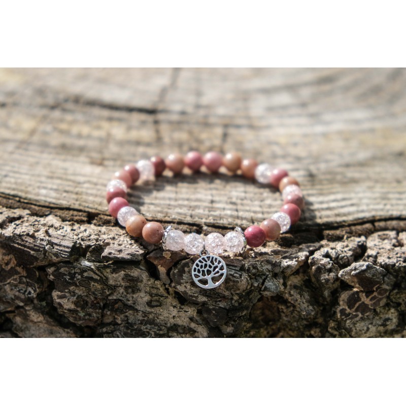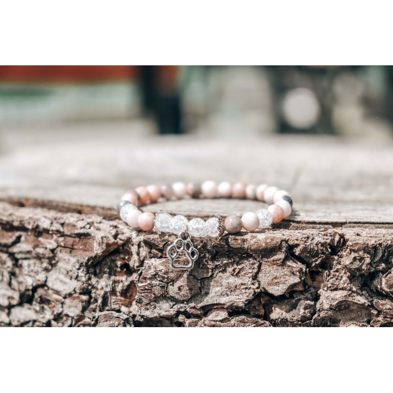 Jedná se o jemný šperk z přírodních materiálů. Náramek je velmi flexibilní, je možné ho natáhnout až na obvod cca 24 cm - vhodný i pro širší obvod ruky. Kamínky jsou navlečeny na silném pružném vlákně transparentní barvy. Kamínky jsou od sebe odděleny kovovými aplikacemi, jež dávají náramku atraktivní vzhled.