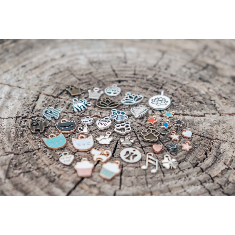 Kamínky jsou od sebe odděleny kovovou aplikací - srdíčko v barvě rose gold, jež dává náramku atraktivní vzhled