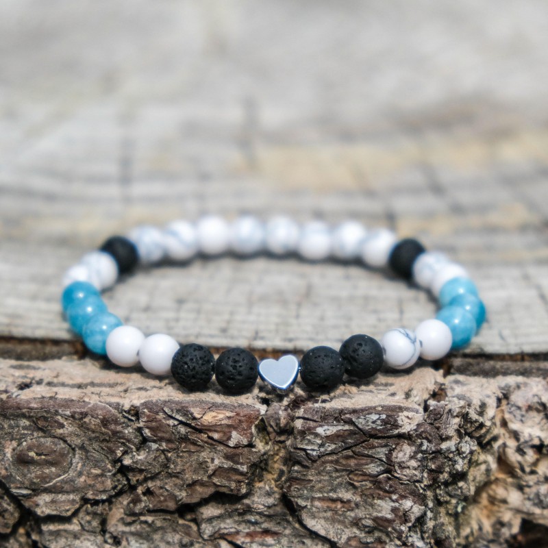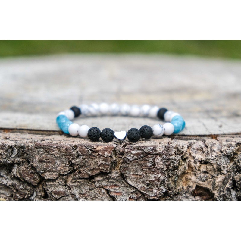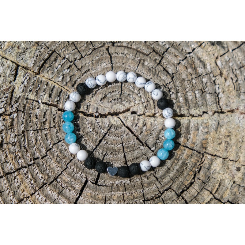 Minerály: howlit, lávový kámen, akvamarín, hematitové srdíčko