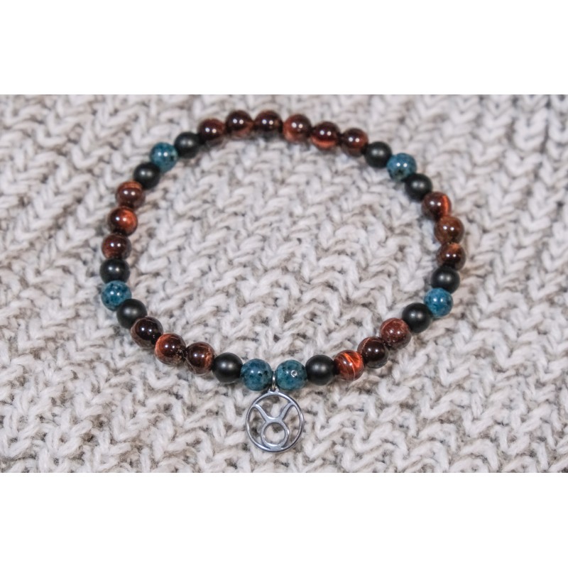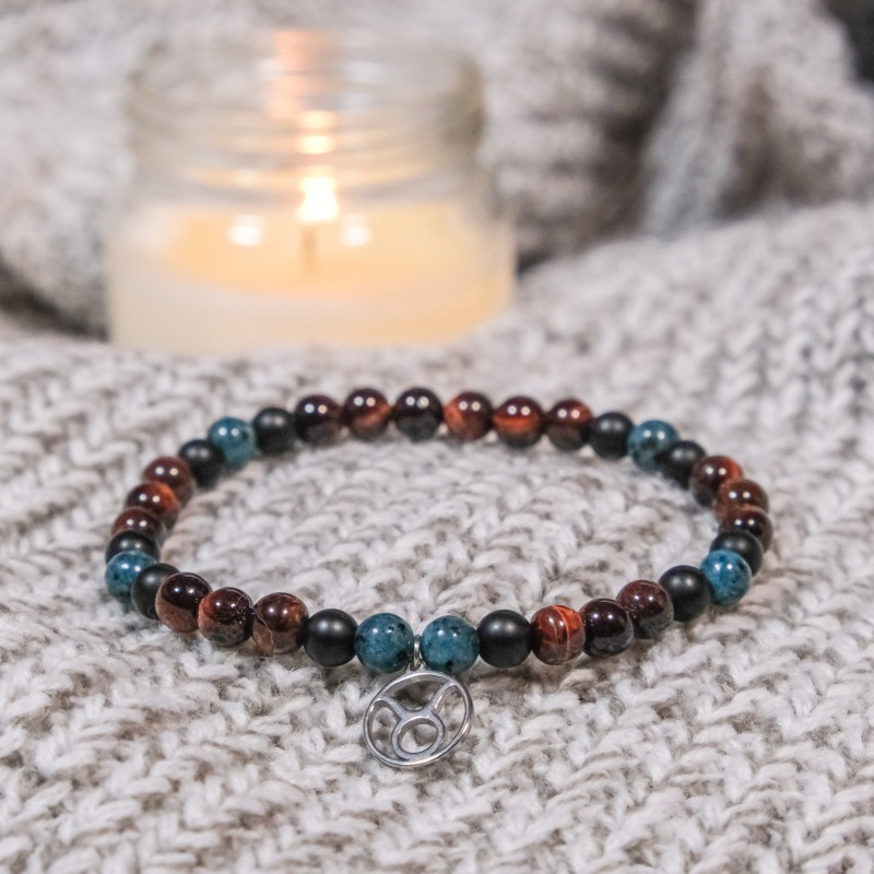Energetický náramek z minerálních kamenů s přívěskem znamení zvěrokruhu / pánská velikost