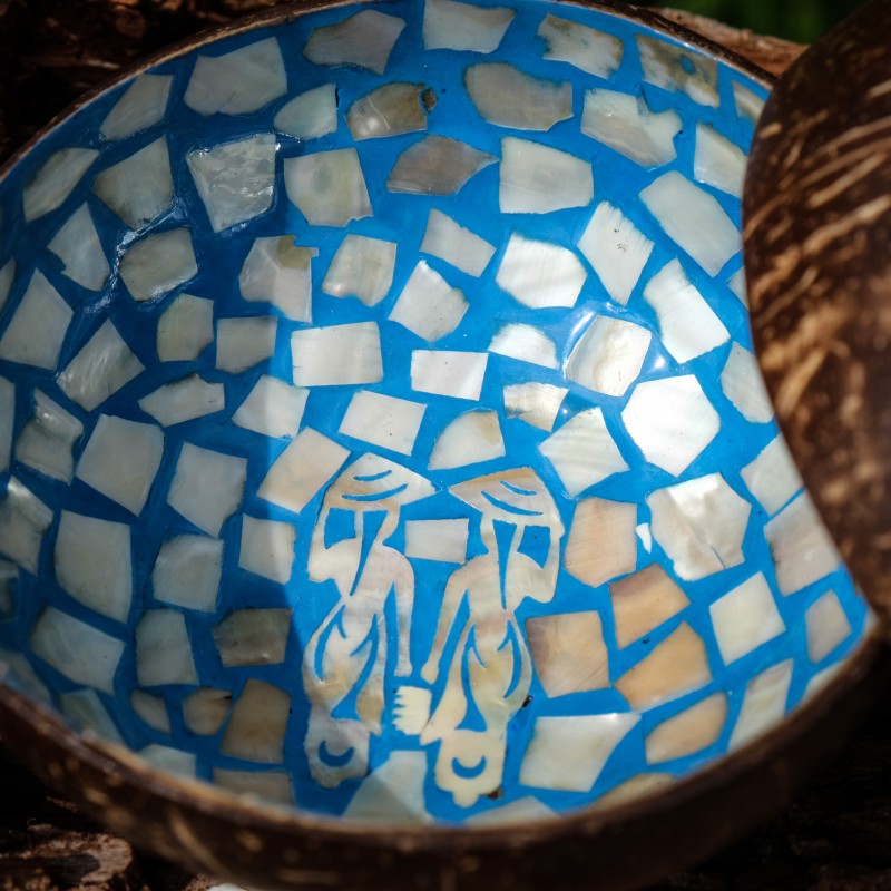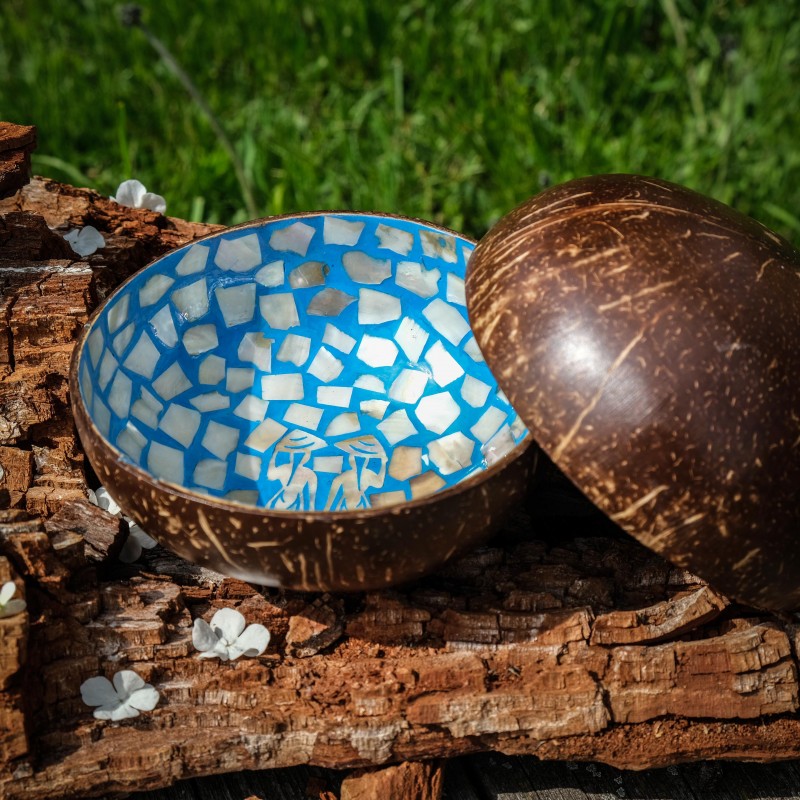 Po vyjmutí kokosového jádra a mléka z tohoto daru přírody jsou misky vyčištěné, obroušené, vyleštěné organickým panenským kokosovým olejem, doplněné o střípky z mušlí a ručně malované. Každá kokosová miska je jedinečná svým tvarem, barvami i dekoračním vzorem z mušlí uvnitř misky. Každá miska má svou vlastní velikost, skvělá jako bytový doplněk. Svou koupí zároveň pomáháte šetřit životní prostředí. Tyto ekologicky šetrné misky jsou velmi estetické, ideální jako dekorace do bytu nebo na suché potraviny.