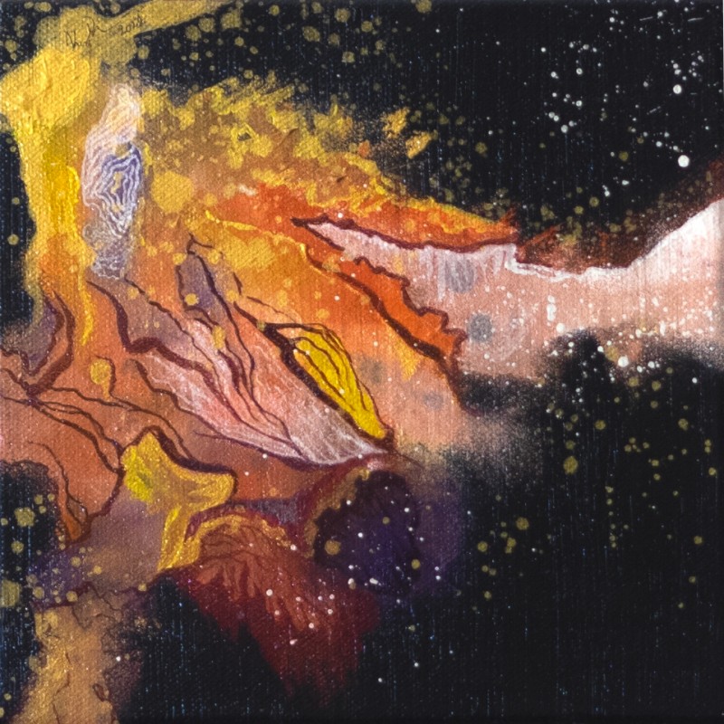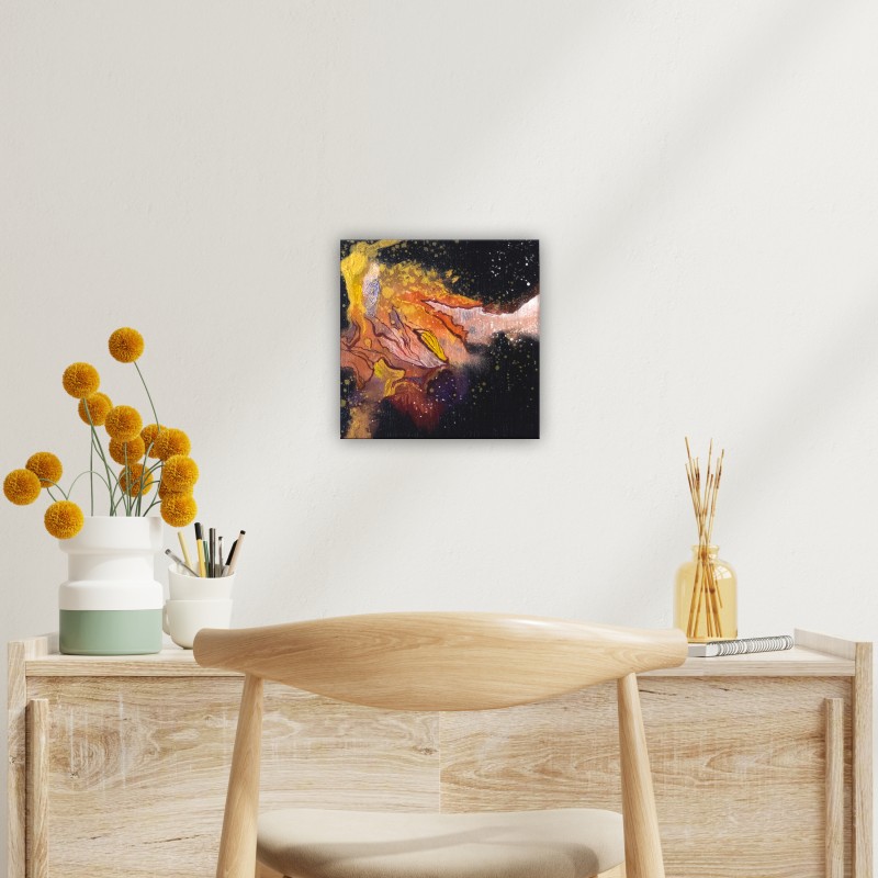 „Jdu s barvou ven. Svíčky, náramky a veškerá má tvorba, za kterou se skrývá část mého já, to je jedna věc. Ale mé vlastní obrazy? To už se bavíme o kusu mého srdce, dlouhém času z mého života a často i o vlastních intimních zážitcích nebo vzpomínkách na různá místa či události. Tenhle obraz jsem namalovala v roce 2022, má za sebou dokonce výstavu, ale já místo toho, abych si představovala jeho popularitu, přála jsem si, aby ho nikdo neviděl. V každém obraze je kus mě… a já se tak bála (a pořád ještě bojím) zveřejnění. Protože dokud obrazy nikdo neuvidí, nemůže je ani zkritizovat a pro mě to znamená, že ani nemůže nahlédnout do mého soukromí, a to pak jakkoli komentovat. Své obrazy neberu jen jako designovou dekoraci nebo terapii při malbě. Jsou to deníky, ke kterým mám určitý vztah. Přemohla jsem sama sebe. Tady jsou. V celé své kráse. Posílám je do světa. Mně už v životě štěstí přinesly, je na čase, aby dělaly radost dál.“