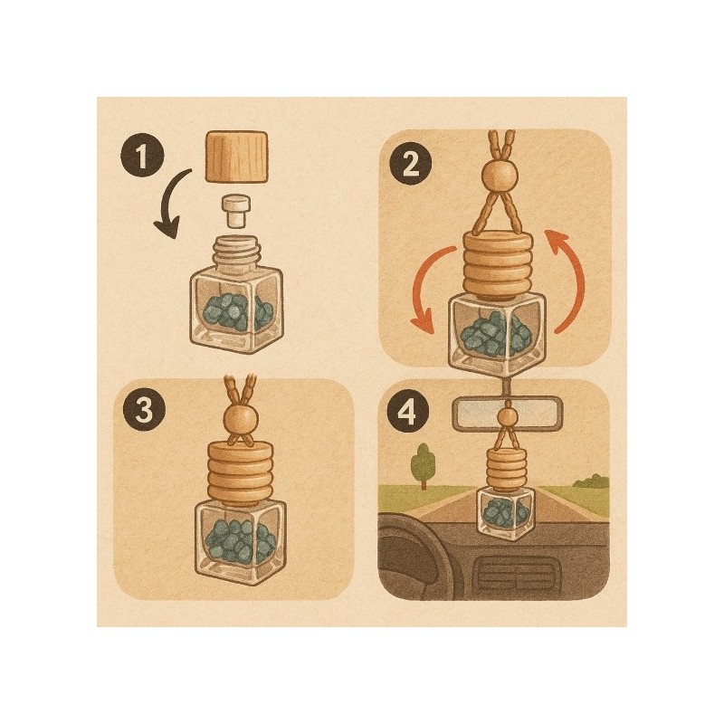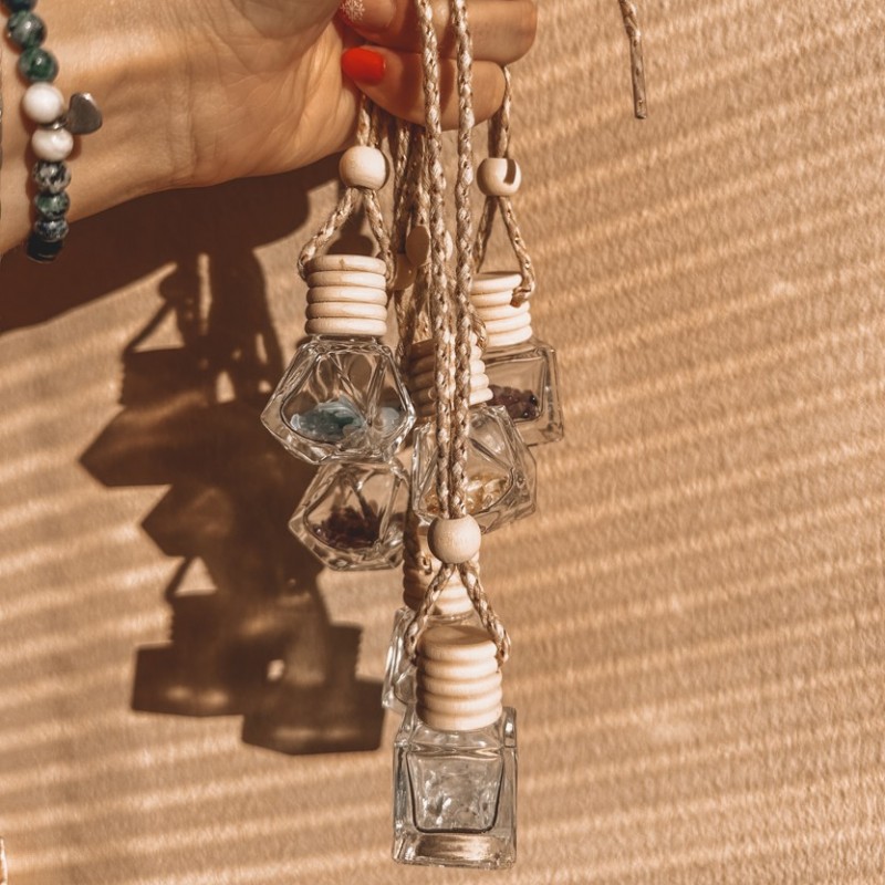 Představujeme vám unikátní vonnou lahvičku s minerálními kameny, která propojuje sílu přírody s jemnou vůní pro dokonalou atmosféru. Elegantní skleněná lahvička s dřevěným uzávěrem a praktickým provázkem na zavěšení se hodí do auta, šatníku, koupelny, pracovny, ale i na noční stolek či do kabelky jako osobní aroma talisman.