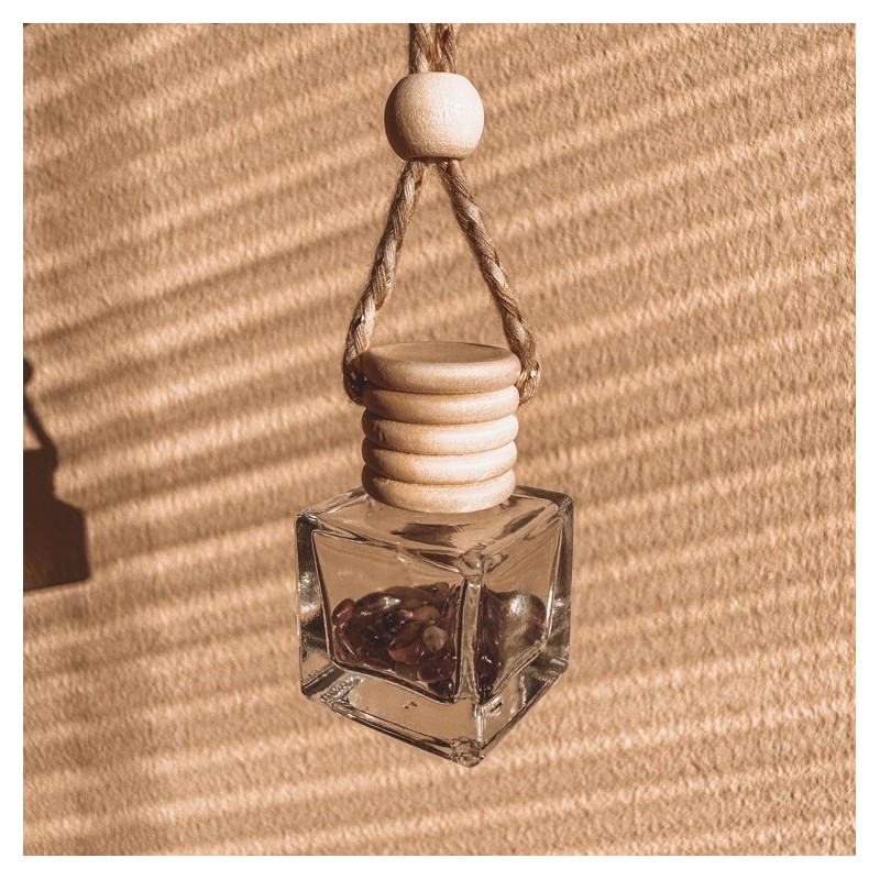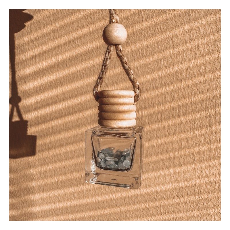 Vonná lahvička s minerálními kameny – spojení aromaterapie a přírodní energie. Zavěste ji do auta, šatníku nebo kamkoli, kde chcete provonět prostor a zároveň se obklopit silou minerálů.
