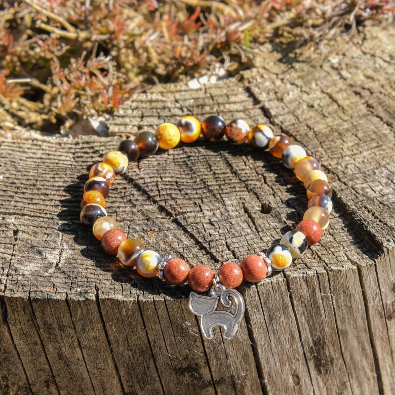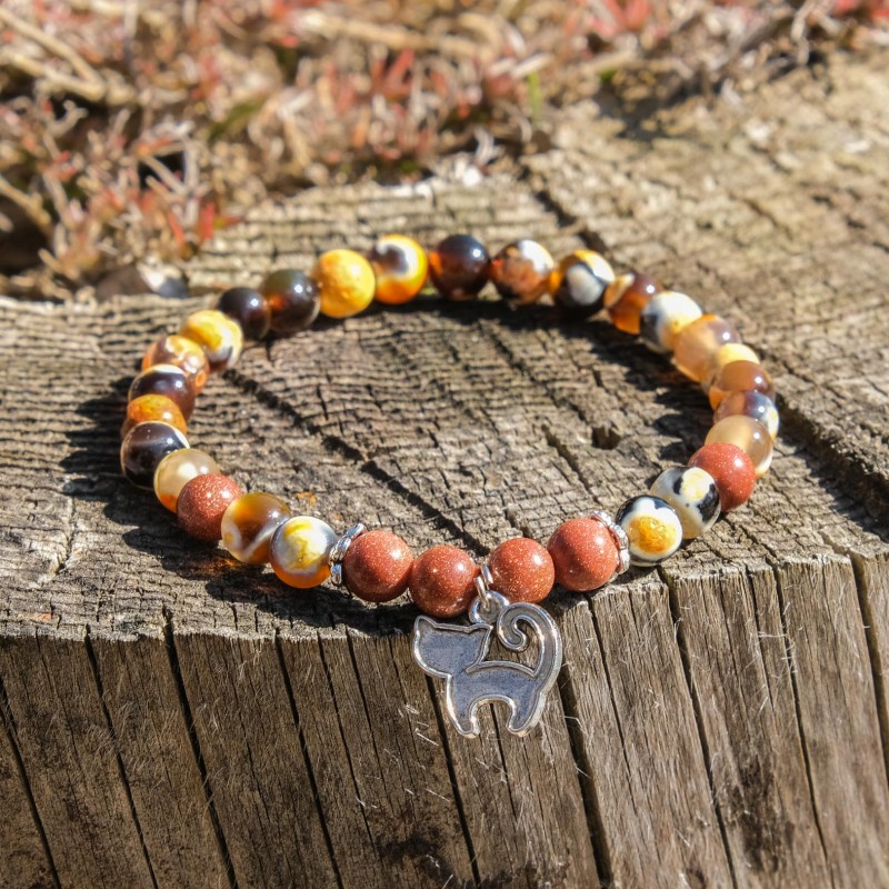 Minerální náramek - Grounding - kočičí přívěsek