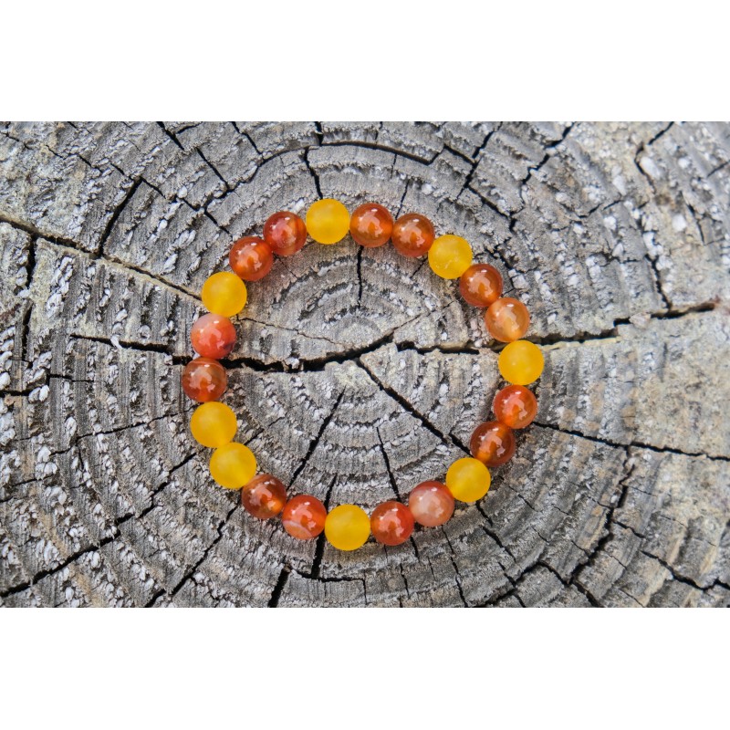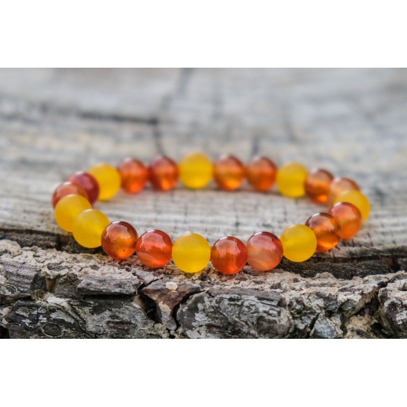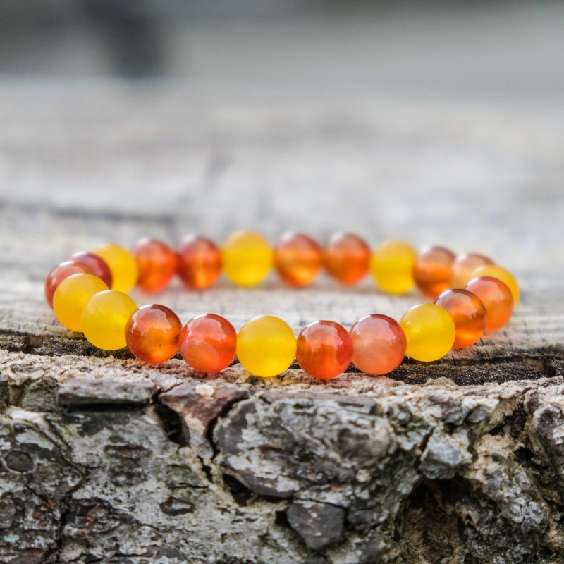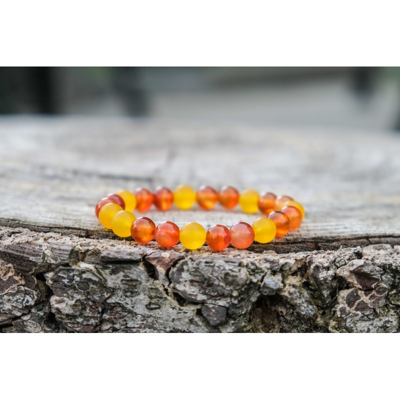 Karneol je stabilizující kámen s vysokou energií, dodává odvahu, klid, trpělivost a harmonii, pozitivní pohled na život, motivuje k úspěchu nejen při podnikání, tiší vztek, žárlivost, závist a zášť. Rozptyluje deprese a negativní myšlenky, dodává výřečnost a potlačuje strach mluvit na veřejnosti, posiluje sebedůvěru, ochraňuje před útoky jiných osob, navozuje klidný spánek, zahání noční můry. Povzbuzuje sexuální aktivitu a odstraňuje závislosti všeho druhu. Předchází kožním onemocněním, zastavuje krvácení z nosu a pomáhá při všech nemocech spojených s krví, ochrana zdraví, dodává sílu a vitalitu, zvyšuje plodnost, léčí artritidu, revmatismus, kosti a šlachy, neurózy a deprese.