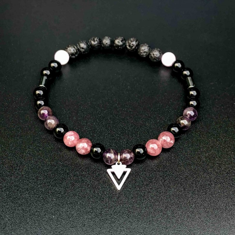 Minerály: lávový kámen, lepidolit, onyx, hematit, kunzit, ametyst chevron