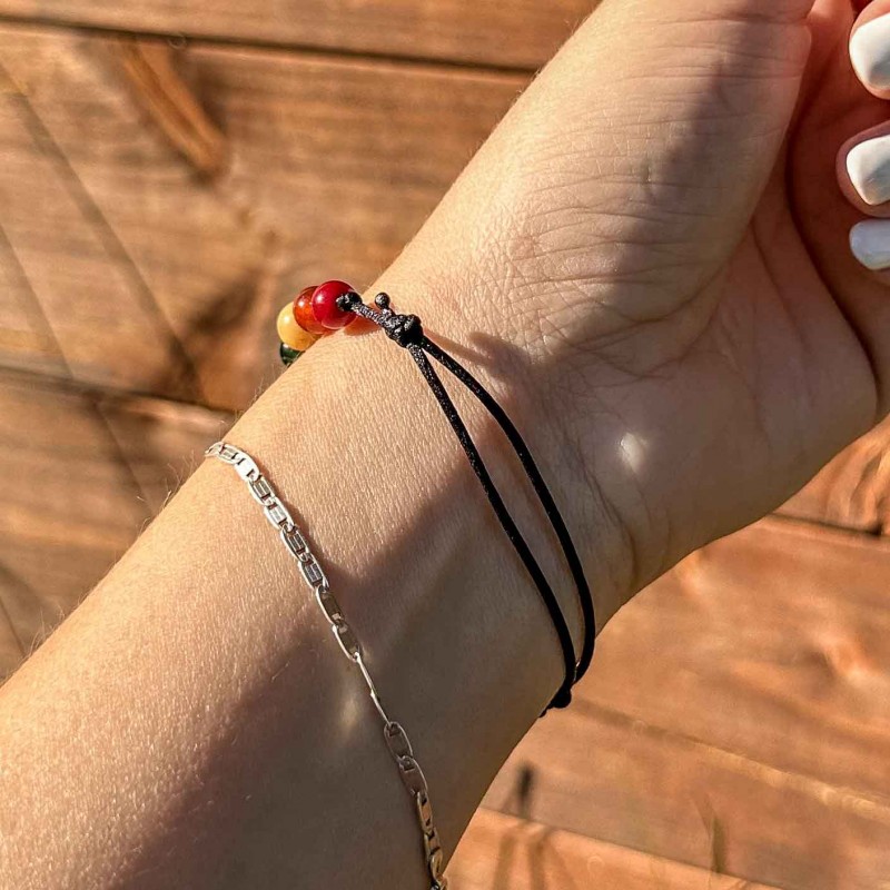Jedná se o jemný šperk z přírodních materiálů, stylový a přesto praktický. Precizně vyrobený minerální náramek je ukázkovým příkladem toho, jak moc na detailech záleží. Náramek je možné nastavit na jakýkoli obvod zápěstí (max. 23 cm). Kamínky jsou navlečeny na saténovém vlákně černé barvy.