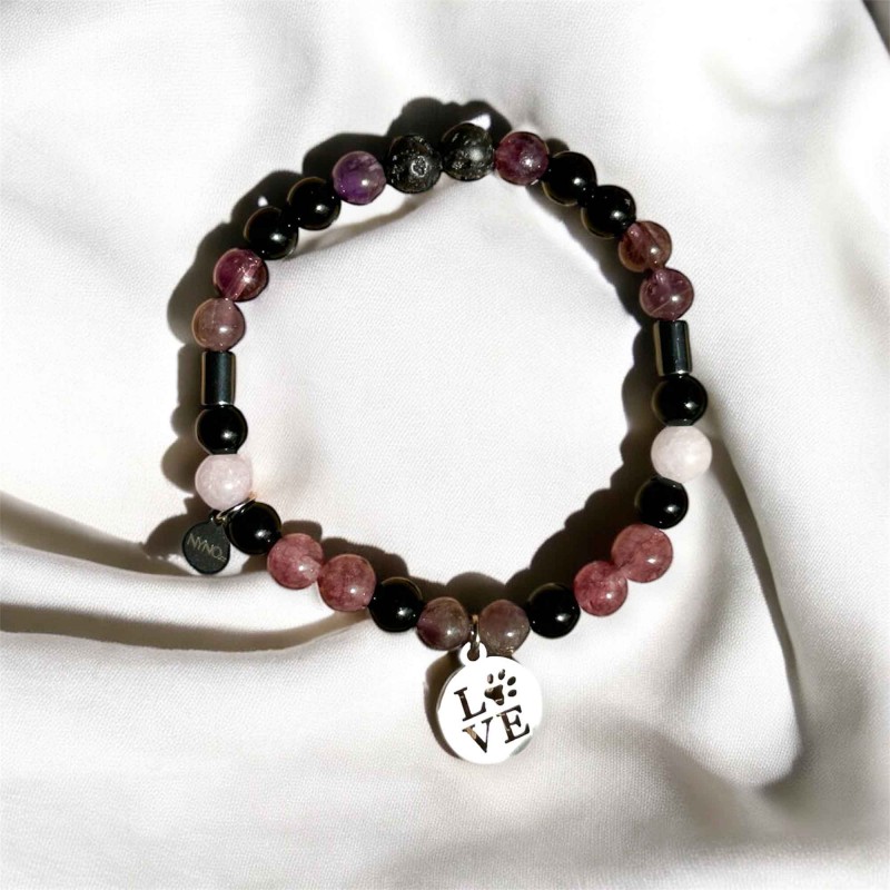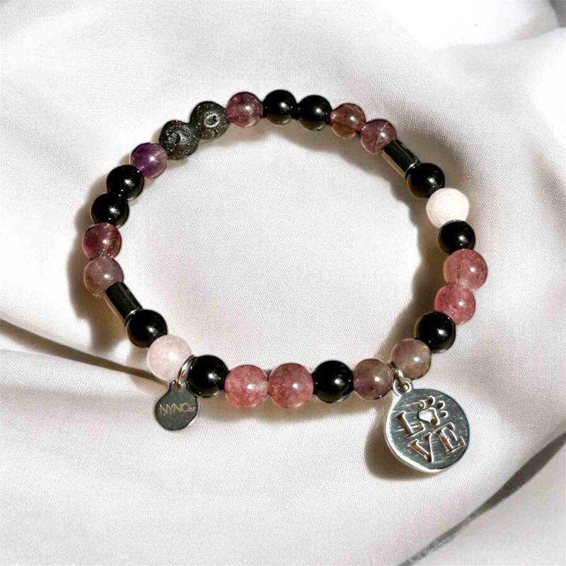 Minerály: lávový kámen, lepidolit, onyx, hematit, kunzit, ametyst chevron