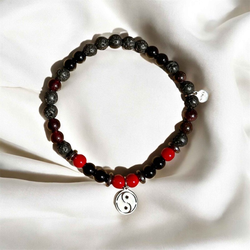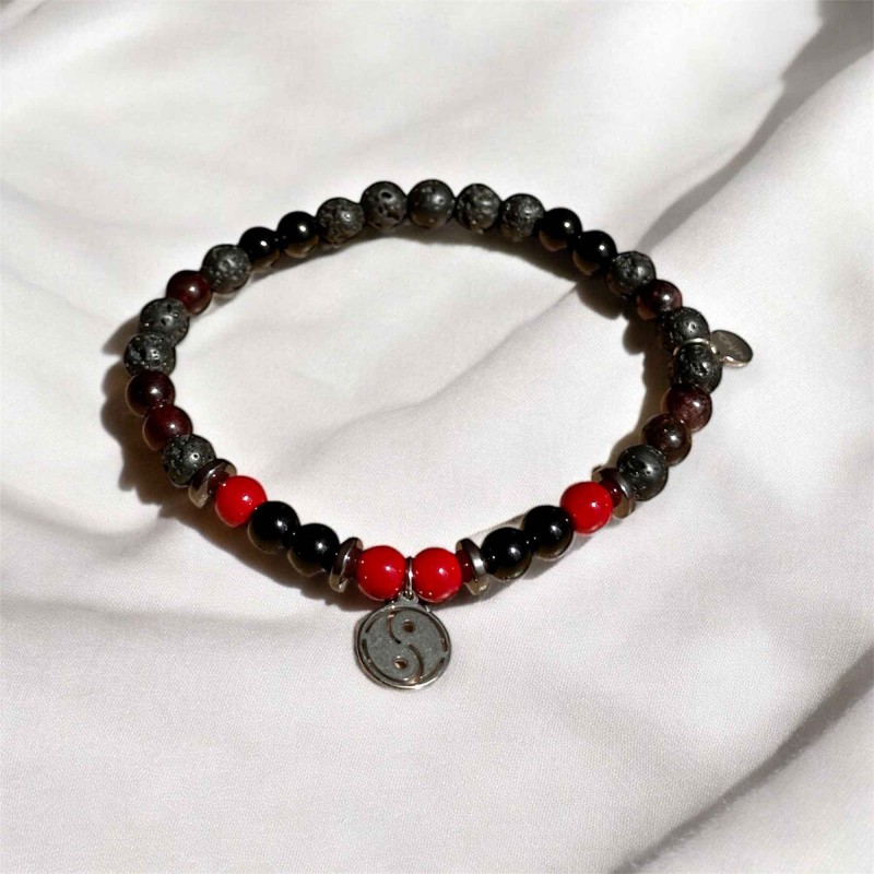 Minerály: lávový kámen, onyx, hematit, jadeit mashan, granát