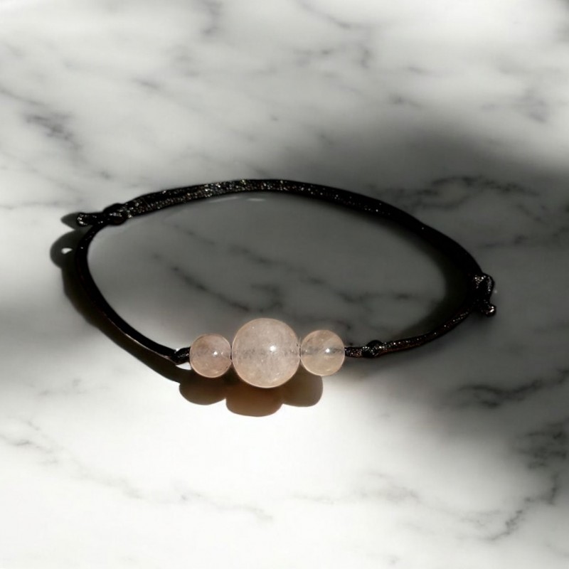 Jedná se o jemný šperk z přírodních materiálů. Náramek je možné nastavit na jakýkoli obvod zápěstí (do 27 cm). Kamínky jsou navlečeny na saténovém vlákně černé barvy.