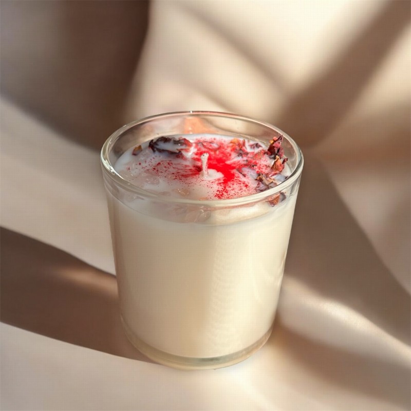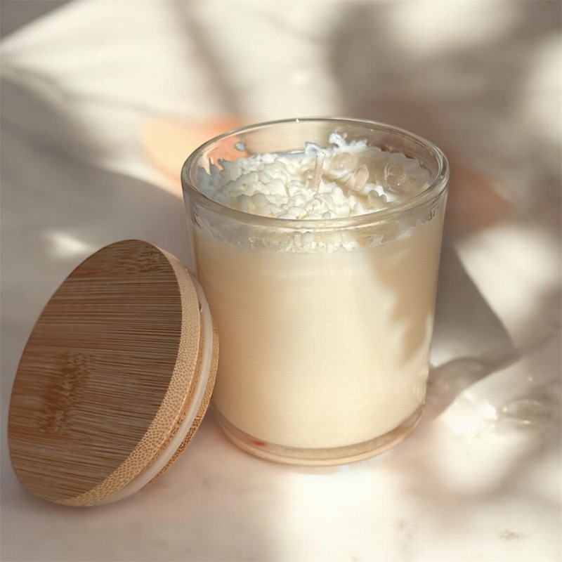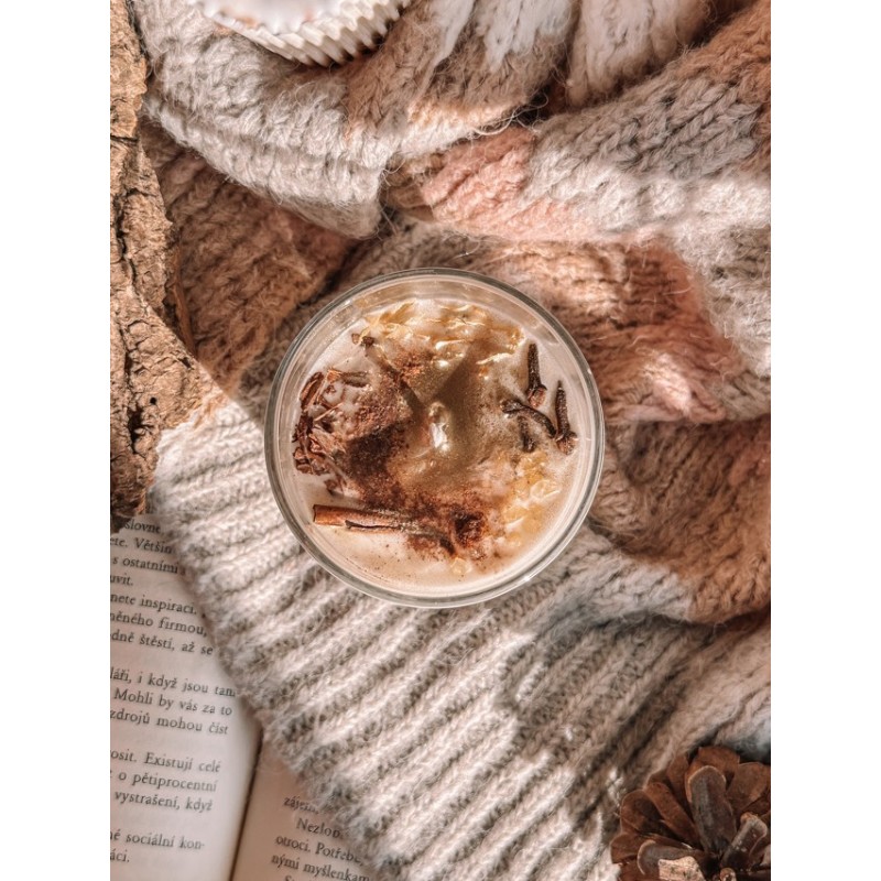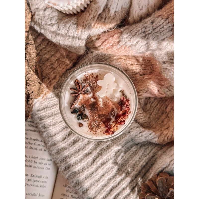 100% přírodní sójová svíčka s minerálním překvapením uvnitř a vůní 100% přírodních esenciálních olejů