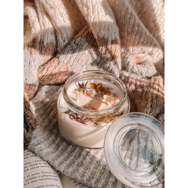 100% přírodní sójová mysteriózní svíčka s minerálním překvapením a tajemnou vůní z esenciálních olejů